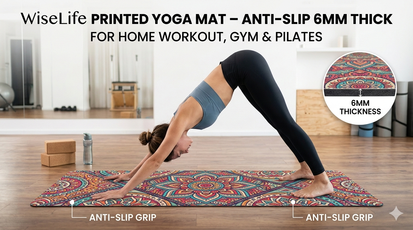 The WiseLife Printed Yoga Mat (6MM) is a comfortable, beginner-friendly, and versatile exercise mat designed for everyday fitness routines.